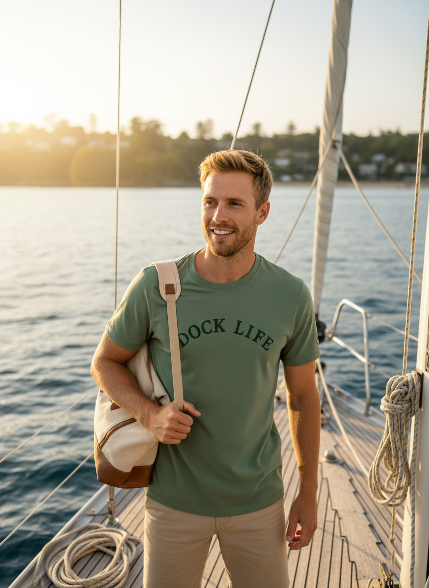 Ours is about good vibes, lasting conversations, and apparel made to match the energy. Dock Gentlemen is dockside casual with an elevated twist - premium fabrics, classic fits, and a little wit woven in. Because whether you're on the water or off the clock, life's always better dockside.